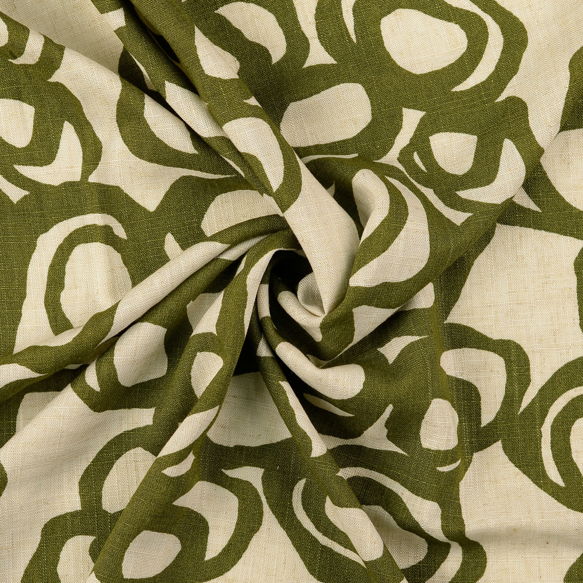 Viskose Leinen "Kreise" natur/oliv