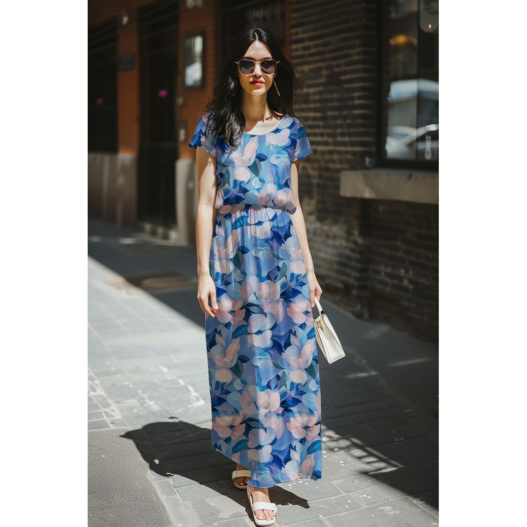 elastische Viskose "Digital Flowers" blau